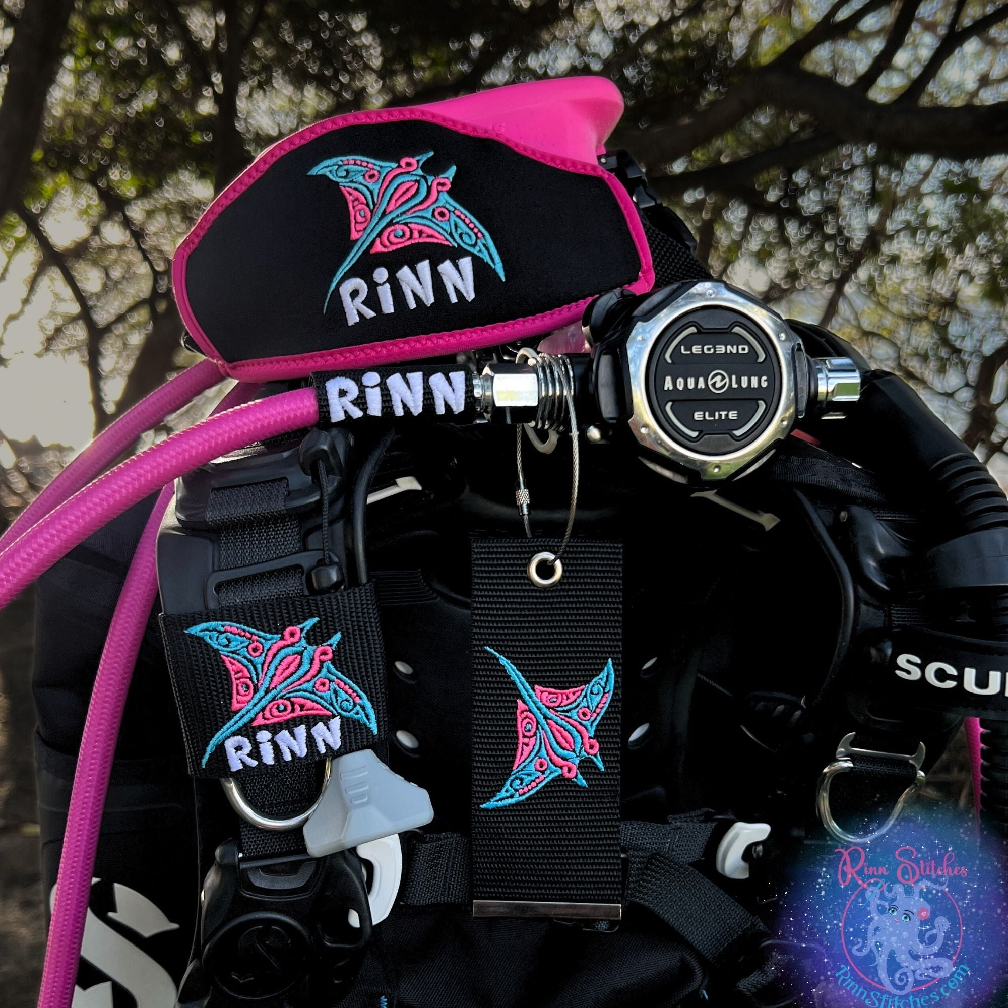 Your Regulator Tag comes personalized in the same font and thread color as the rest of your bundle, giving your setup that polished, unmistakably-you vibe. And because we love spoiling our Dive Ohana, every bundle includes a FREE 6 Sticker Pack perfect for water bottles, dive logs, or gifting to your dive buddies. 🤿🐙