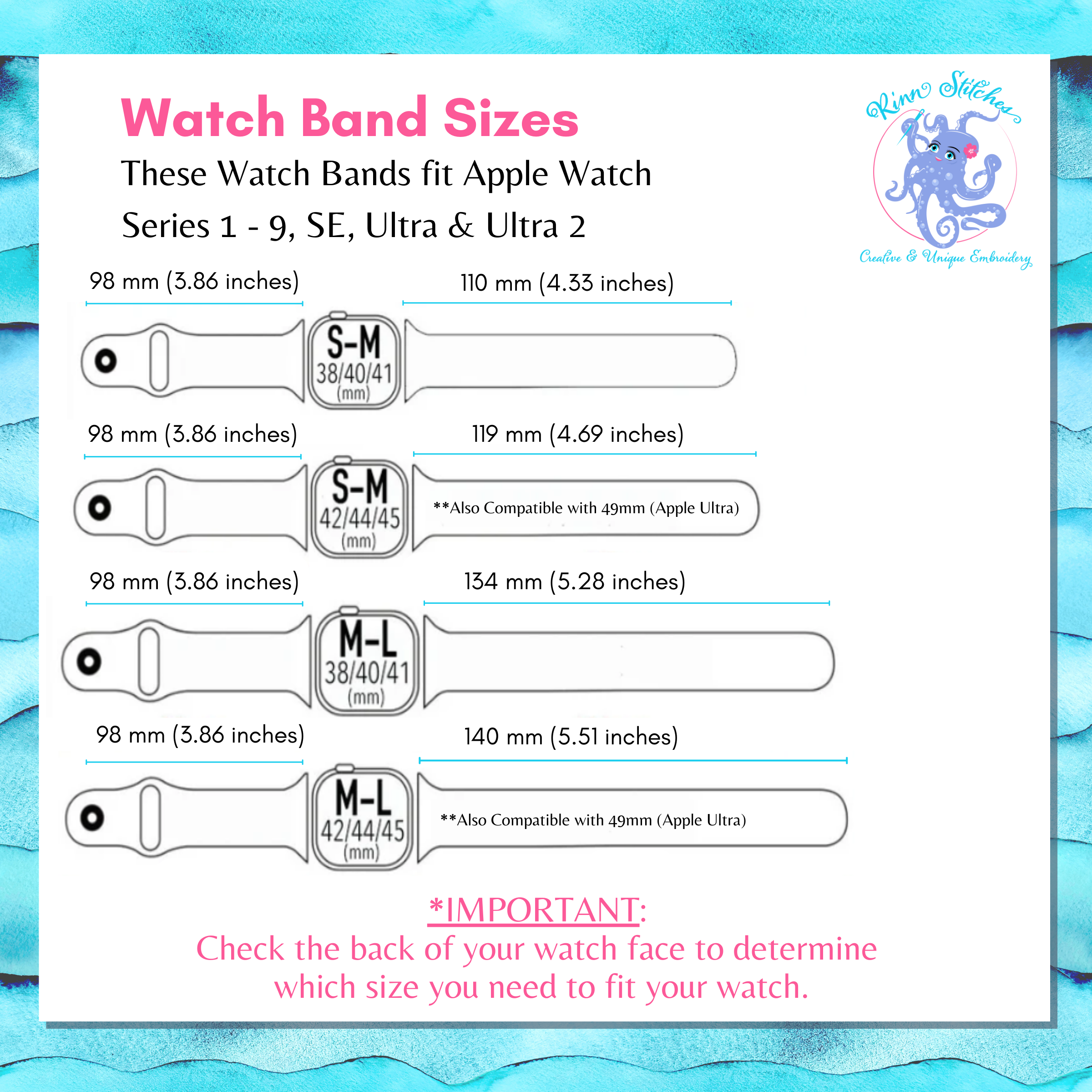 - Bands fit Apple Watch Series 1, 2, 3, 4, 5, 6, 7, 8, 9 and SE, Ultra/Ultra2
